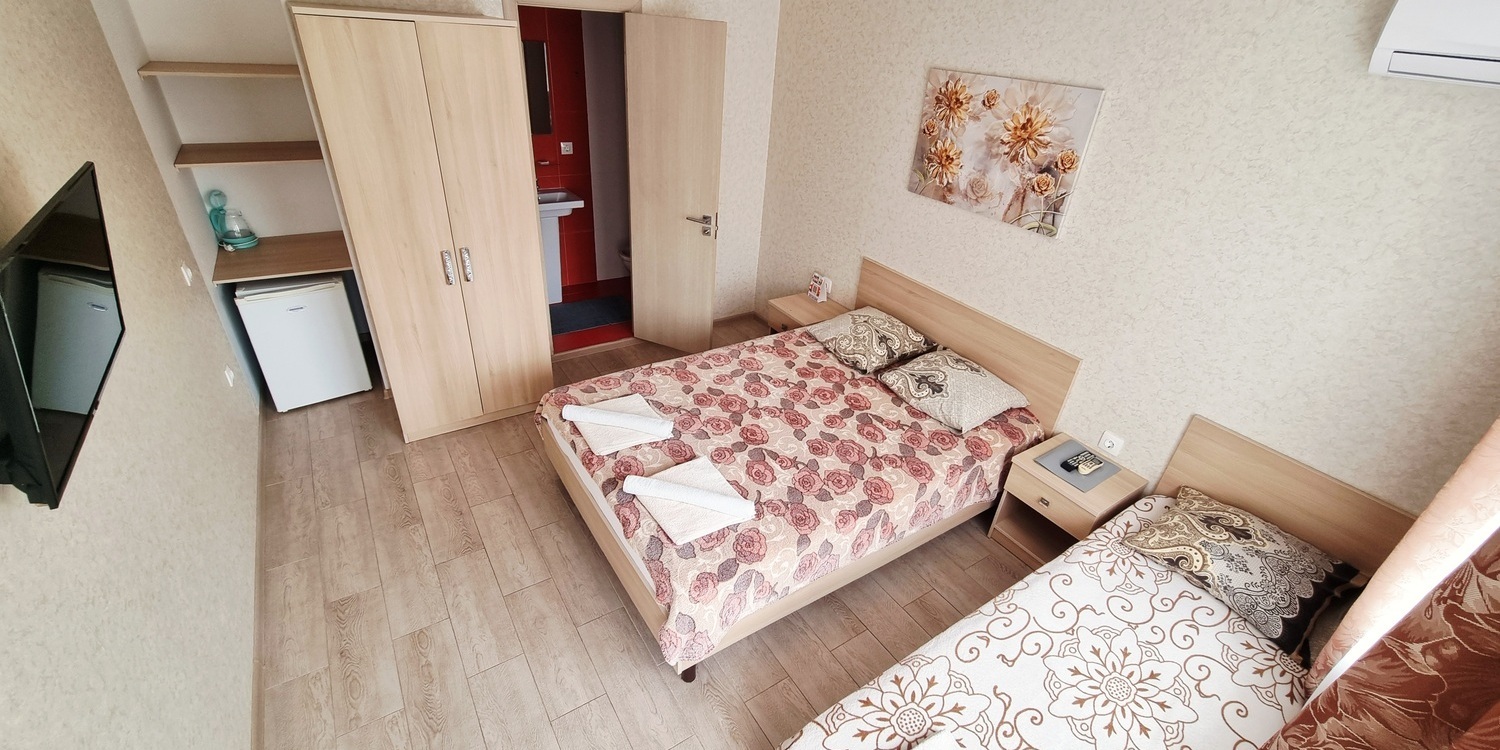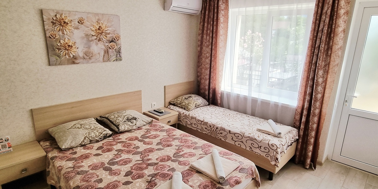 Идеальное решение для семьи с одним ребёнком или трёх друзей, которые хотят отдохнуть вместе — без потери личного пространства и с максимальным комфортом. Уютная, стильная и функциональная трехместная категория комнат, создаст все условия для комфорта каждому гостю. Невероятный вид на горы, оставит незабываемые впечатления от пребывания в нашем доме.