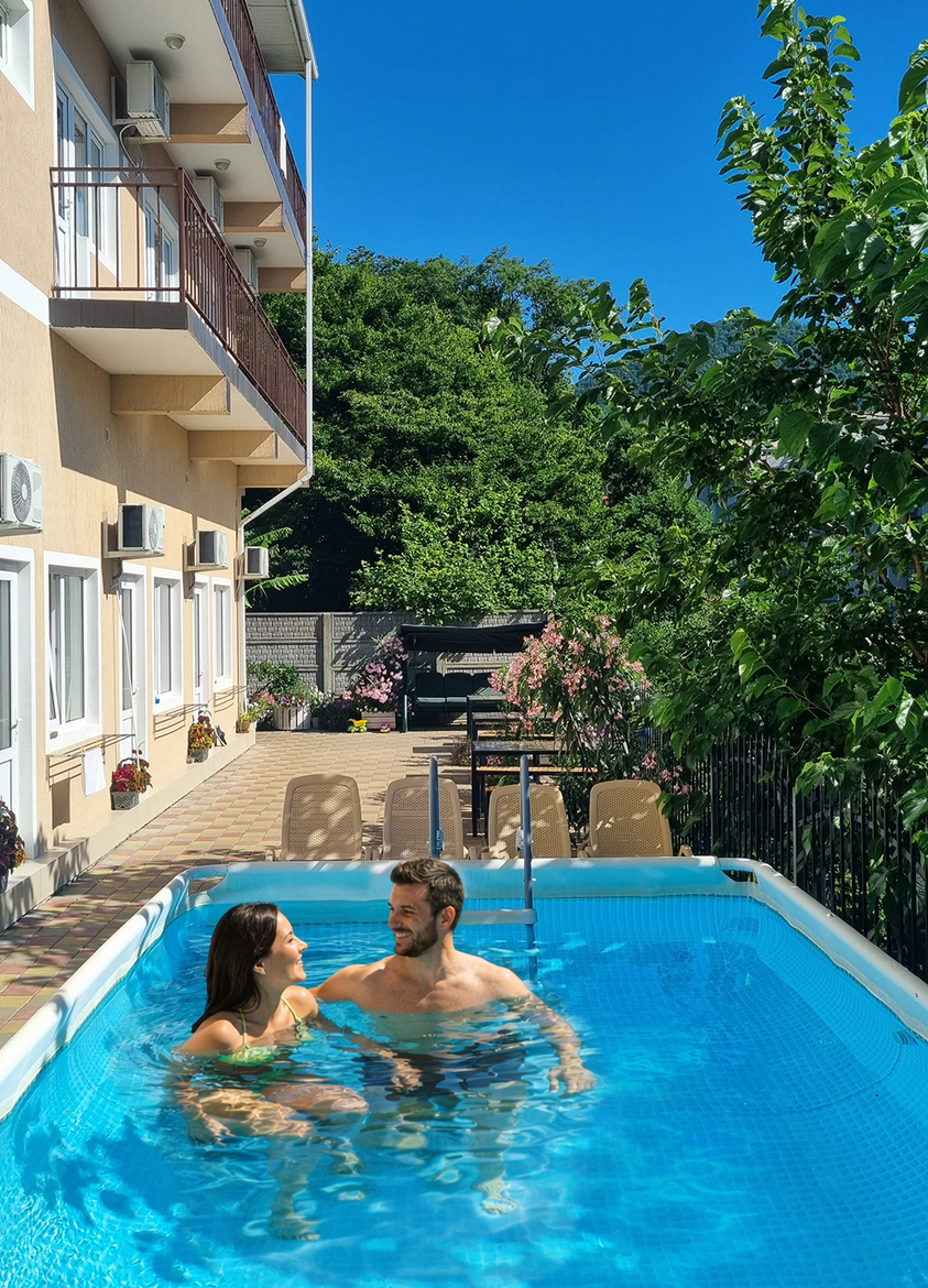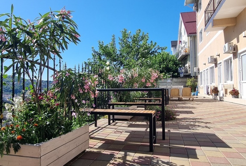 Тихий зеленый дворик, уютные номера с душевной атмосферой и вид на горы с террасы — в нашем курортном частном доме вы почувствуете, что приехали не в отель, а в гости к хорошим знакомым.